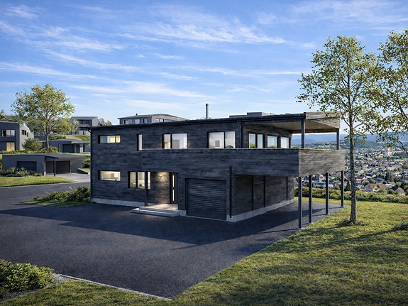 Perspektiv av eneboligen. Delvis AI generert illustrasjon. Avvik vil forekomme.