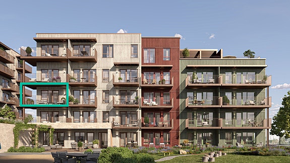 Leiligheten er vestvendt mot store grøntområder, med bl.a. fellestunet og nye Louiseparken.