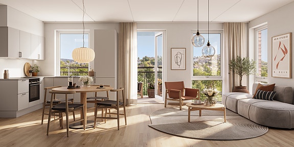 Flott 3-romsleilighet med vestvendt balkong | Hjørnekjøkken fra HTH | Moderne standard | Bygging vedtatt