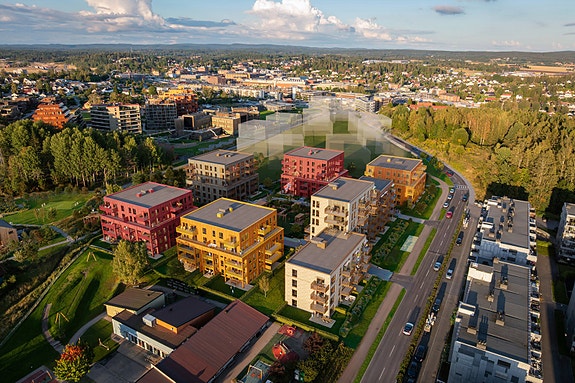 Det første feltet inneholder en lamell og fem punkthus. Totalt 212 leiligheter på 35 - 110 kvm - med stor variasjon i fasadematerialer og ikke minst farger. Det første salgstrinnet lanseres i februar 2026. Registrer din interesse, så holder vi deg oppdatert frem mot salgsstart.