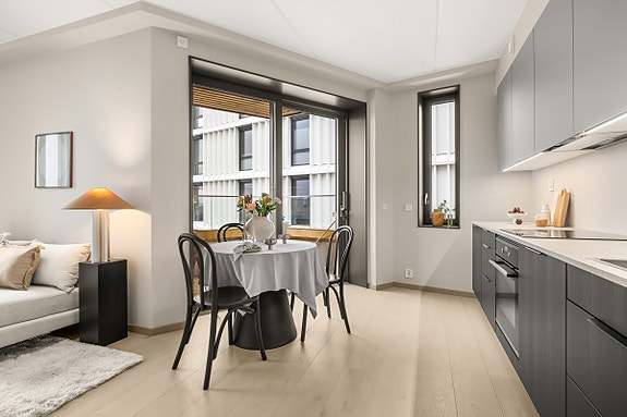 B1101 er en arealeffektiv 2-roms med høy standard. Leiligheten har vestvendt beliggenhet med store vindusflater som sørger for mye naturlig lys.