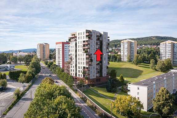 Markering av leiligheten, beliggende i 9. etasje