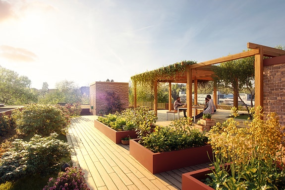 Alle beboere i Hus C har tilgang til felles takterrasse i Hus A.