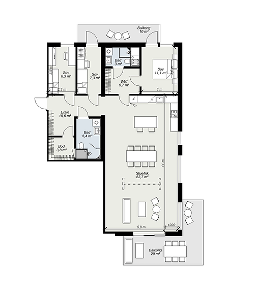 Fantastisk fjordutsikt. 64m2 stue. 3 soverom, 2 bad, Walk in garderobe og bod. 2 balkonger.