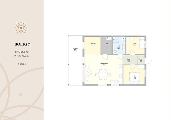 Primærrom (P-ROM) : fra 79,5 til 87,7 m²