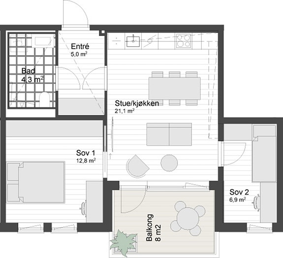 Åpen stue/kjøkkenløsning med takhøyde på 2.6 meter og store vinduer som slipper lyset inn. Pen og tidsriktig lys en-stavs eikeparkett, og lys innredning og fargedekor. Balansert ventilasjon med varmegjenvinning som sørger for godt inneklima og lave kostnader for oppvarming. Vi tilbyr nå Deleie i samarbeid med Coo til alle våre boligkjøpere. Ta kontakt med selger for mer informasjon!