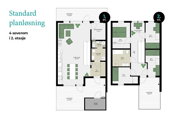 2 plan, 4 soverom, 131 kvm BRA