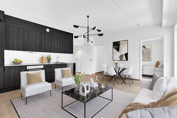 Ny 2-roms leilighet som inneholder åpen stue/kjøkken, soverom, bad og privat østvendt balkong