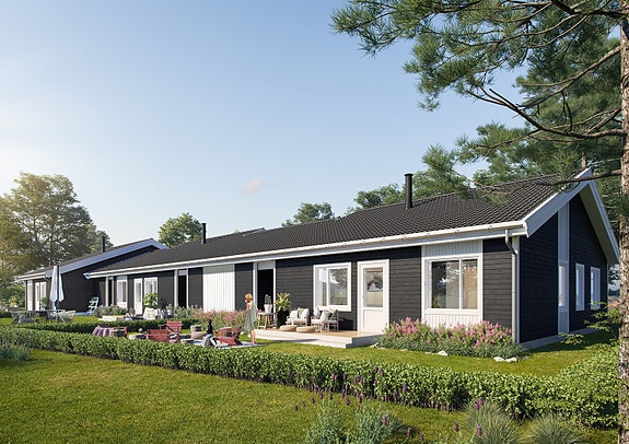 Illustrasjon av fasade mot sørvest - illustrasjonen vil avvike fra virkelig miljø og omgivelser
