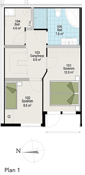 I Bakkedalen har vi to boligtyper, begge rekkehus over tre plan. Felles for begge er energieffektive løsninger og trivelige uteplasser. Mellom husene blir det fine grøntområder og lekeplasser til glede for alle beboerne i Bakkedalen.