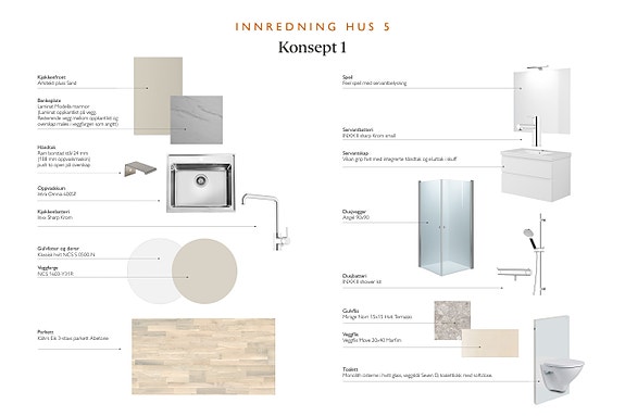 • På badet leveres skap med benk over avsatt plass til vaskemaskin/tørketrommel