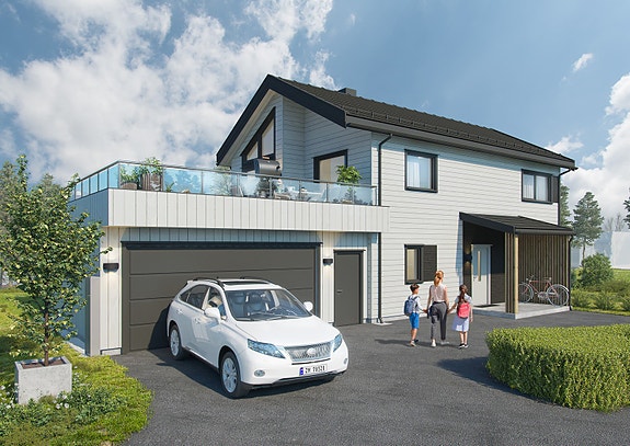 Illustrasjon - Enebolig med dobbelgarasje
