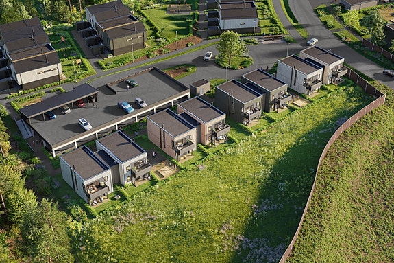 Praktiske og moderne leiligheter i firemannsboliger. Med sine 65 kvm inneholder leiligheten entré, bad, 2 gode soverom og åpen stue- og kjøkkenløsning. Kjøkken og stue er utformet med naturlige soner for spisebord, sittegruppe og tv-krok. Fra oppholdsrommet har du utgang til enten en solrik balkong i andre etasje eller til både terrasse og hage i første etasje. Store vindusflater gir mye naturlig lys i rommet.