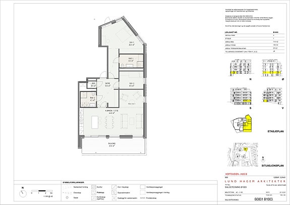 Toppleiligheten i 5. etasje i hus B, leilighet B5002, måler 171 kvm, og er omkranset av balkong/terrasse på over 100 kvm med utsikt til fjorden i sør og Holmenkollen i nord. Heisen tar deg direkte opp i leilighetenes entré. Med 360 graders overblikk blir det tydelig hvor nær du er det beste byen har å by på, som blant annet marka, sjøen og Frognerparken. Toppleilighetenes arkitektoniske løsninger gir følelse av rom, luft, gjennomlys og utsyn uansett hvor du befinner deg. Oppholdsrommet er boligens sosiale område, og er delt inn i soner med blant annet spisestue og stue med fjordutsikt. Kveldssolen nytes på terrassen med utsikt mot vest. Hovedsoverommet med eget bad er boligens private sone. Her har du følelsen av å ha din egen suite, med direkte utgang til balkongen/terrassen. Toppleiligheten er for deg som stiller krav til kvalitet, beliggenhet og privatliv. Boligenes løsninger, materialvalg og uteområder er av god standard. Her finner du alle de riktige detaljene, som til sammen skaper et helt spesielt hjem.