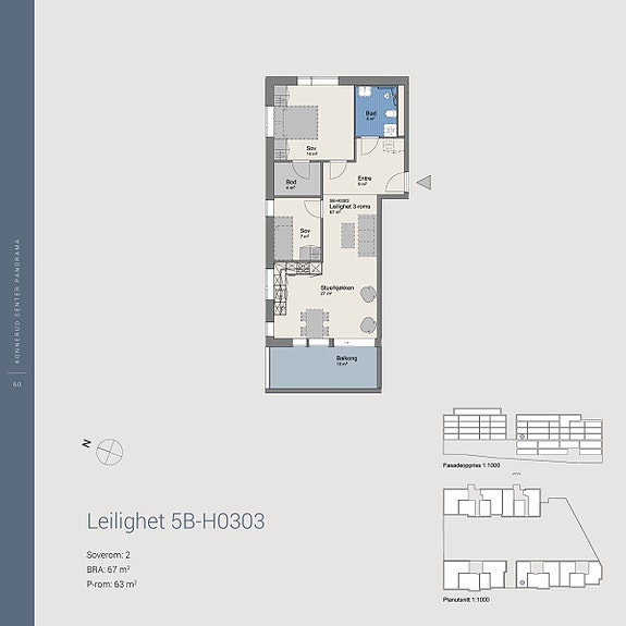 Sportsbod og terrasser/balkonger kommer i tillegg. Arealet som er oppgitt på de enkelte rom er rommets netto gulvareal.