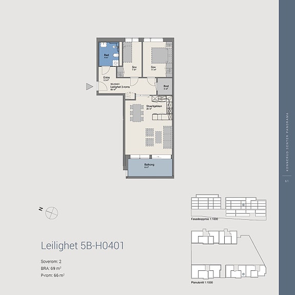 Sportsbod og terrasser/balkonger kommer i tillegg. Arealet som er oppgitt på de enkelte rom er rommets netto gulvareal.