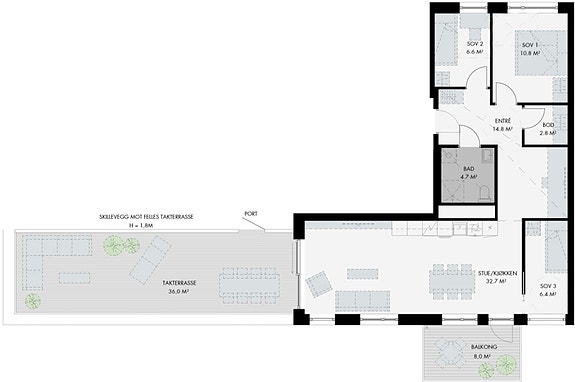 Lys og luftig leilighet med 2,60 takhøyde, store vindusflater, lys en-stavs eikeparkett og privat takterrasse. Balansert ventilasjon sikrer godt inneklima og lave energikostnader. Som eier av en Plussbolig utvides hverdagssonen med et 600 kvm stort fellesområde: kaffebar, lounge, selskapsrom, treningssenter, møterom og gjesterom for overnattingsbesøk. Leiligheter som har p-plass inkludert leveres med el. bil lader. Har du betjeningsevne, men mangler egenkapital? Vi tilbyr nå Deleie i samarbeid med Coo til alle våre boligkjøpere. Ta kontakt med selger for mer informasjon.