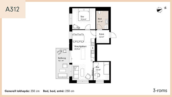 - TBA (terrasse-/balkongareal) 10,10 kvm