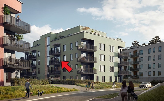 Helt ny flott 2 roms i 3 etg. med utsikt. Heis og Balkong. Innflyttingsklar i 1 kvartal 2026.