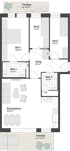 Leiligheten bygges med lys en-stavs eikeparkett, generøs takhøyde og store vindusflater. Balansert ventilasjon sørger for godt inneklima og lave kostnader til oppvarming. Som kjøper kan du velge mellom tre ulike interiørstiler (Nordisk / Klassisk / Kreativ) som inkluderer veggfarger, kjøkkenfronter og -håndtak, benkeplater og fliser på bad. Konseptene er tegnet ut av WOOD arkitektur + design. Mulighet for kjøp av garasjeplass. Leiligheten kvalifiserer til Grønt Boliglån, konferer med selger for mer informasjon.