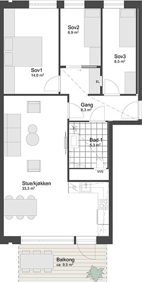 Leiligheten bygges med lys en-stavs eikeparkett, generøs takhøyde og store vindusflater. Balansert ventilasjon sørger for godt inneklima og lave kostnader til oppvarming. Konsept på interiør har vi kalt Nordisk, og inkluderer veggfarger, kjøkkenfronter og -håndtak og benkeplater. Konseptet er tegnet ut av WOOD arkitektur + design. Denne leiligheten kan kjøpe garasjeplass for kr. 595 000 inkl. lader til EL-bil. Leiligheten kvalifiserer til Grønt Boliglån, kontakt selger for mer informasjon.