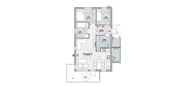Det vil også være mulig med terskelfri inngang fra stuen og ut til terrassen, i alle boligene som ligger på bakkenivå.
