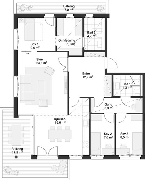 4-roms endeleilighet i 3. etasje med separat stue og kjøkken, romslig gang og entre, tre soverom, to bad og walk-in-garderobe. To balkonger med plass til sittegruppe. Balansert ventilasjon sørger for godt inneklima og lave kostnader til oppvarming. Ny bolig kommer med fem års reklamasjonsrett og oppfølging fra utbygger. Boligen selges inkl. 1 parkeringsplass. Forutsatt ledige plasser kan ekstra parkeringsplass i garasjekjeller kjøpes. Ta kontakt med selger for mer informasjon.