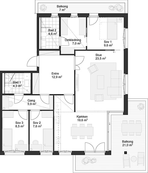 4-roms endeleilighet i 3. etasje med to balkonger, åpen stue- og kjøkkenløsning, tre soverom og to bad. Balansert ventilasjon sørger for godt inneklima og lave kostnader til oppvarming. Denne leiligheten er oppgradert med kompositt benkeplater og underlimt vask på begge bad, samt kjøkken med 80 cm koketopp og Røroshetta Slide Sense ventilator. Tre glassdører mellom entre og stue, og kjøkken og gang gir en luftig og lys romfølelse. Ny bolig kommer med fem års reklamasjonsrett og oppfølging fra utbygger. Boligen selges inkl. 1 parkeringsplass. Forutsatt ledige plasser kan ekstra parkeringsplass i garasjekjeller kjøpes. Ta kontakt med selger for mer informasjon.