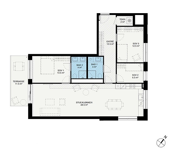- TBA (terrasse-/balkongareal) 11,50 kvm