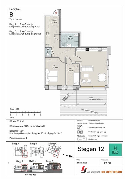 Leilighet B - A1-2, A2-2, A3-2,C1-1, C2-2, C3-2