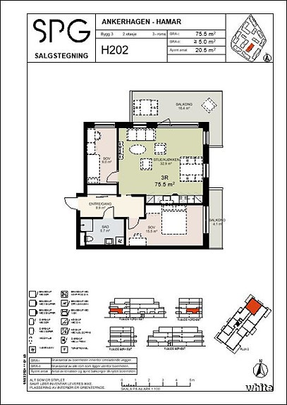 I første byggetrinn presenterer vi første kvartal med 82 selveierleiligheter fordelt på tre boligblokker. 9 av disse leilighetene er solgt til Hamar kommune og er forbeholdt personer med nedsatt funksjonsevne.