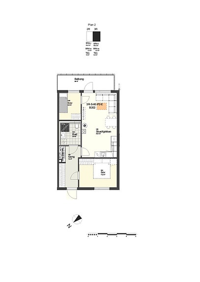 Bruksareal: 60 kvm, BRA-i: 60 kvm , BRA-e: 5 kvm , TBA: 9,40 kvm Bruksareal: 44 kvm - 60 kvm