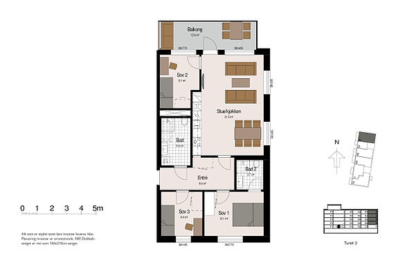 • Tre soverom hvor det ene har skyvedørsgarderobe