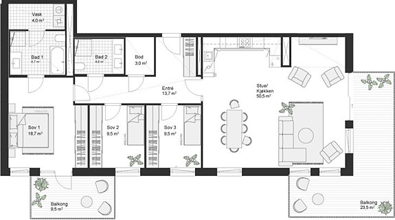 - Leilighet