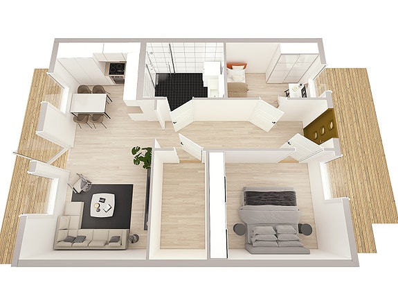 Boligene bygges av Ferdighus AS og skal oppføres med god standard, både utvendig og innvendig. Møllertunet skal bygges med forskjellige størrelser på leiligheten slik at det kan passe nettopp deg. Enten du er på jakt etter din første bolig, eller om du vil ut av eneboligen din, og leve et enklere liv i ei leilighet med alt på ett plan. Leilighetene er godkjent for Husbanklån som gir gunstige vilkår med inntil 85 % av kjøpesummen.