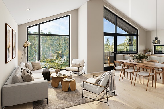Moderne eneboliger i kjede på Trevanntoppen - Stilfull arkitektur - Stor terrasse over carport - Strai kjøkken