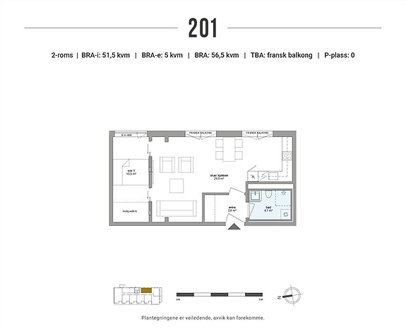 Koselig leilighet i 2. etasje med store vinduer og åpen stue/kjøkkenløsning med godt innslipp av lys. Soverommet har inngang fra to sider, og badet har skjermet adkomst fra entré. Både entré og soverom har godt med garderobeplass. Denne leiligheten har to franske balkonger, en i stue og en på kjøkken. Innholdsrikt kjøkken med fin spiseplass. Adkomst fra innvendig korridor. Det følger med 1 utvendig sportsbod.