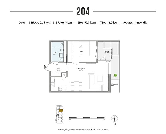 Denne effektive leiligheten i 2. etasje er fl eksibel i planløsningen. Enten kan den bygges med ett romslig soverom, eller soverommet kan reduseres til fordel for større stue. Alternativt kan det også lages et ekstra soverom eller kontor i stua, som tilvalg. Leiligheten har utsikt mot Mjøsa og Vingnesåsen, og får en romslig, delvis overdekket og skjermet balkong på 11,5 kvm. Deler av balkongen kan innglasses hvis man ønsker det (tilvalg). Godt med garderobeplass i entré. Leiligheten