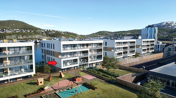 Moderne leilighetskompleks. Familievennlig med lekeplass og grønne omgivelser.