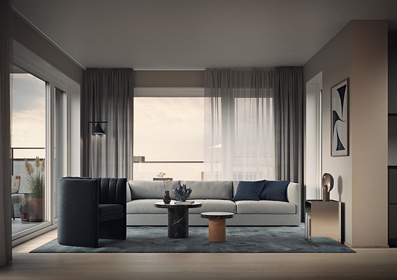 Fra hver etasje går det heis rett ned til underetasjene, hvor det vil bli etablert et felles garasje og bodanlegg. Fokuset har vært å skape boliger uten å gå på kompromiss med verken standard eller bokvalitet. Planløsningene er fleksible og åpne med store vindusflater, som gir godt med sollys.