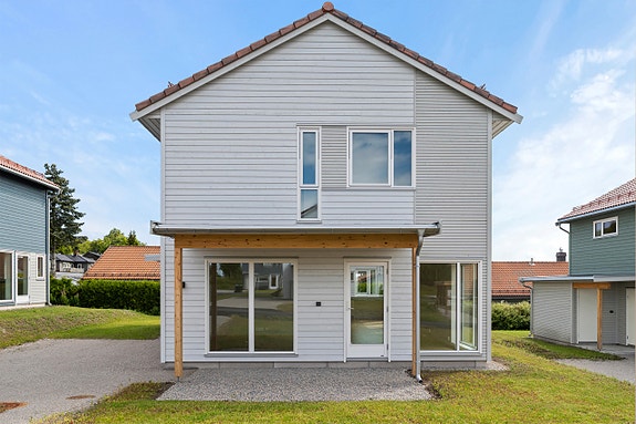 Hus 30 har en fin beliggenhet på feltet med gode parkeringsmuligheter. Dette huset vil få en fin, privat uteplass mot sørvest med gode solforhold på tomten.