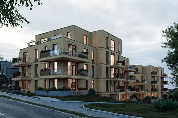 * Ekstra store terrasser på leilighetene i 1. etasje.