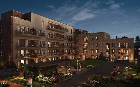 I de tre byggene finner du et utvalg av leiligheter i forskjellige størrelser, fra praktiske 25 kvm for aleneboeren til romslige 132 kvm med opptil tre soverom og god plass til familien. Alle byggene har elegant utformede inngangspartier. Bygg 1 og 2 strekker seg over fire etasjer med en tilbaketrukket femte etasje. Bygg 3 består av tre etasjer, med noen særegne toppleiligheter. De har dobbelt saltak, noe som åpner rommet og gjør det romslig og luftig. Store vindusflater sørger for gode lysforhold og at du får utsikten inn i stuen.