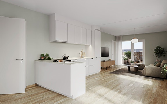 Velkommen til Ankerløkka Park! Leilighetene er utstyrt med moderne kjøkken fra Sigdal. Kun ment som illustrasjon.