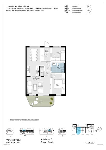 Leilighetene planlegges ferdigstilt fra 3.kvatal 2026, under