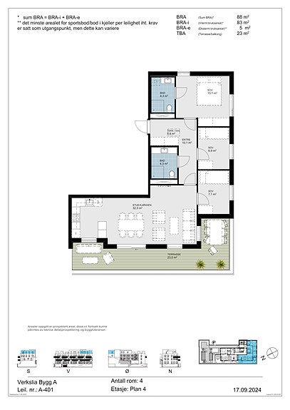 Leilighetene planlegges ferdigstilt fra 3.kvatal 2026, under