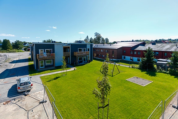 Balkongen som følger med er stor og luftig. Den er også vendt mot en lekeplass som vil komme forran bygget. Denne lekeplassen skal stå ferdig 1.06.2025, med andre ord ikke lenge til!