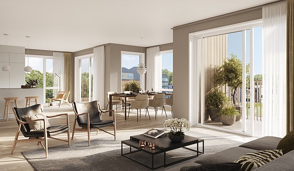 3D-illustrasjon fra en tilsvarende leilighet, utsikt er ikke lik.