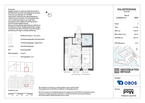 *Leiligheter uten tilgjengelighetskrav* Enkelte boliger i prosjektet er unntatt fra regelen om tilgjengelighetskrav. Dette gjelder for følgende leiligheter i hus 4: 1001, 2002, 3002, 4002, 5002.