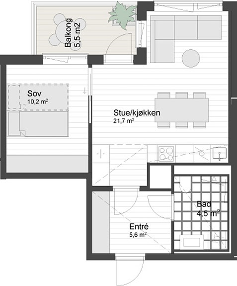 Åpen stue/kjøkkenløsning med takhøyde på 2.6 meter og store vinduer som slipper lyset inn. Pen og tidsriktig lys en-stavs eikeparkett, og lys innredning og fargedekor. Balansert ventilasjon med varmegjenvinning som sørger for godt inneklima og lave kostnader for oppvarming. Vi tilbyr nå Deleie i samarbeid med Coo til alle våre boligkjøpere. Ta kontakt med selger for mer informasjon!
